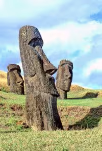 Easter Island is a special territory of Chile which is located in the Pacific Ocean at the very edge of Polynesia. It is claimed to be the most remote inhabited island in the world and is famous for its monumental statues, called moai and is a UNESCO World Heritage Site. The moai were carved by the Rapanui people between 1100 and 1680 CE.